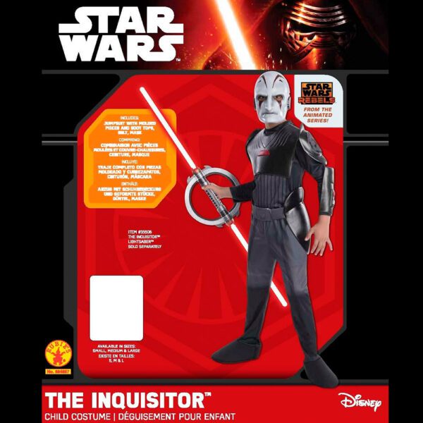 ¡Deja que tu pequeño se convierta en el villano más temido de la galaxia! Con nuestro disfraz de El Gran Inquisidor, lucirá una capa imponente y detalles siniestros que lo harán destacar en cualquier batalla intergaláctica. Perfecto para fiestas temáticas, Halloween o juegos de rol. ¡Que comience la aventura!